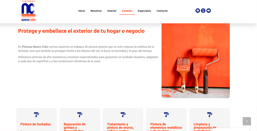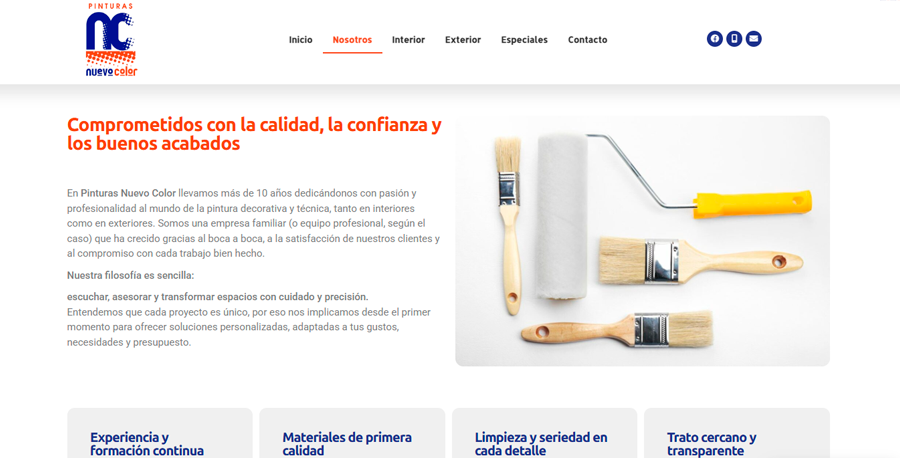 Un negocio dedicado a la pintura y el color ha de tener una web en la que el cliente pueda conocer sus servicios, con un diseño moderno, limpio, que destaque del resto de empresas del sector, y con una interfaz de usuario sencilla y atractiva.